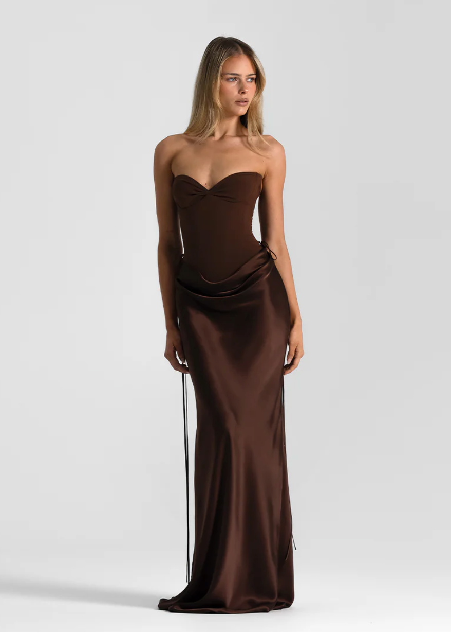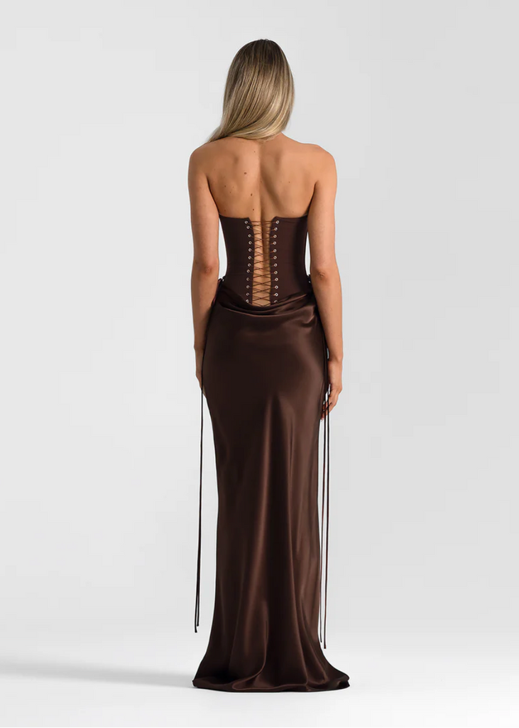 - Elongated self silk ties, designed to connect to the Verity Bustier.