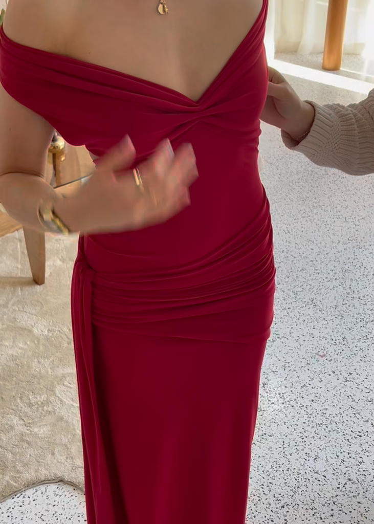 Crafted from Deconduarte's exquisite jersey fabric, this style seamlessly blends structured form with graceful fluidity. The adjustable bra component features ties at the back for optimal bust support. Additionally, the versatile chest overlay offers multiple styling options, enhancing the gown’s adaptability.