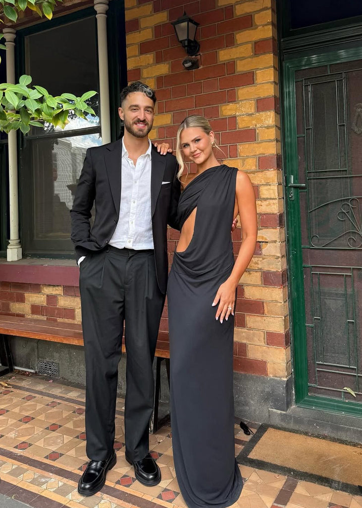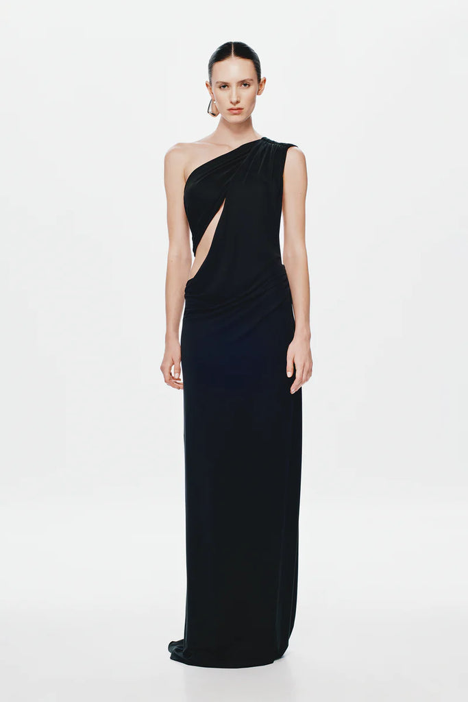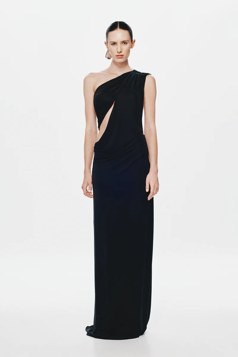 The Solstice Cupro Maxi Dress in Black.