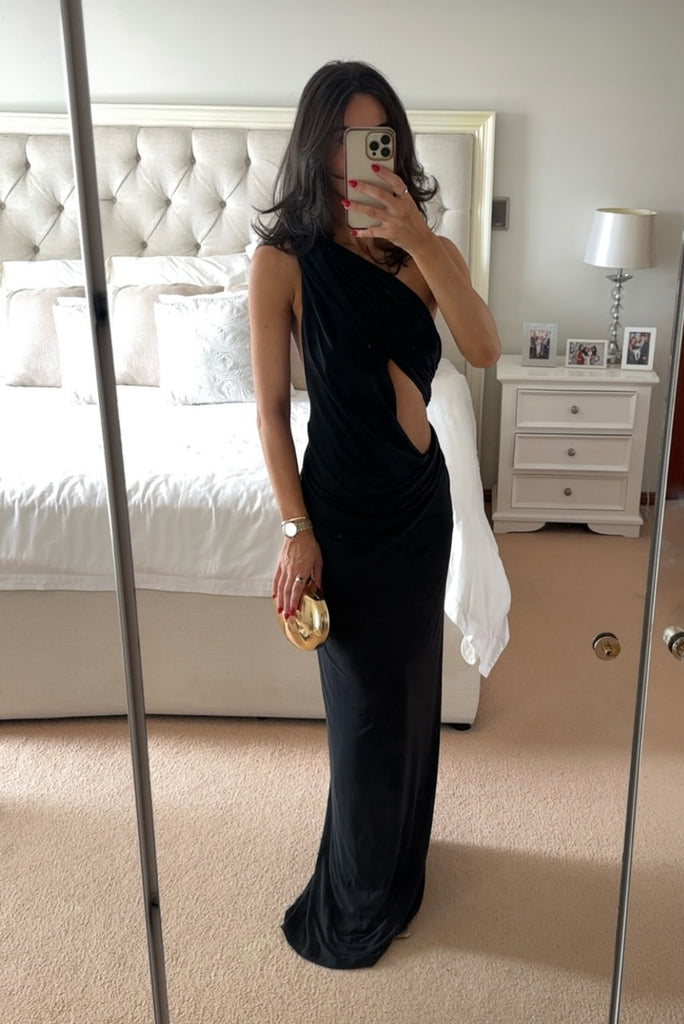 - One shoulder maxi dress