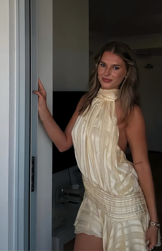 - Halter neckline